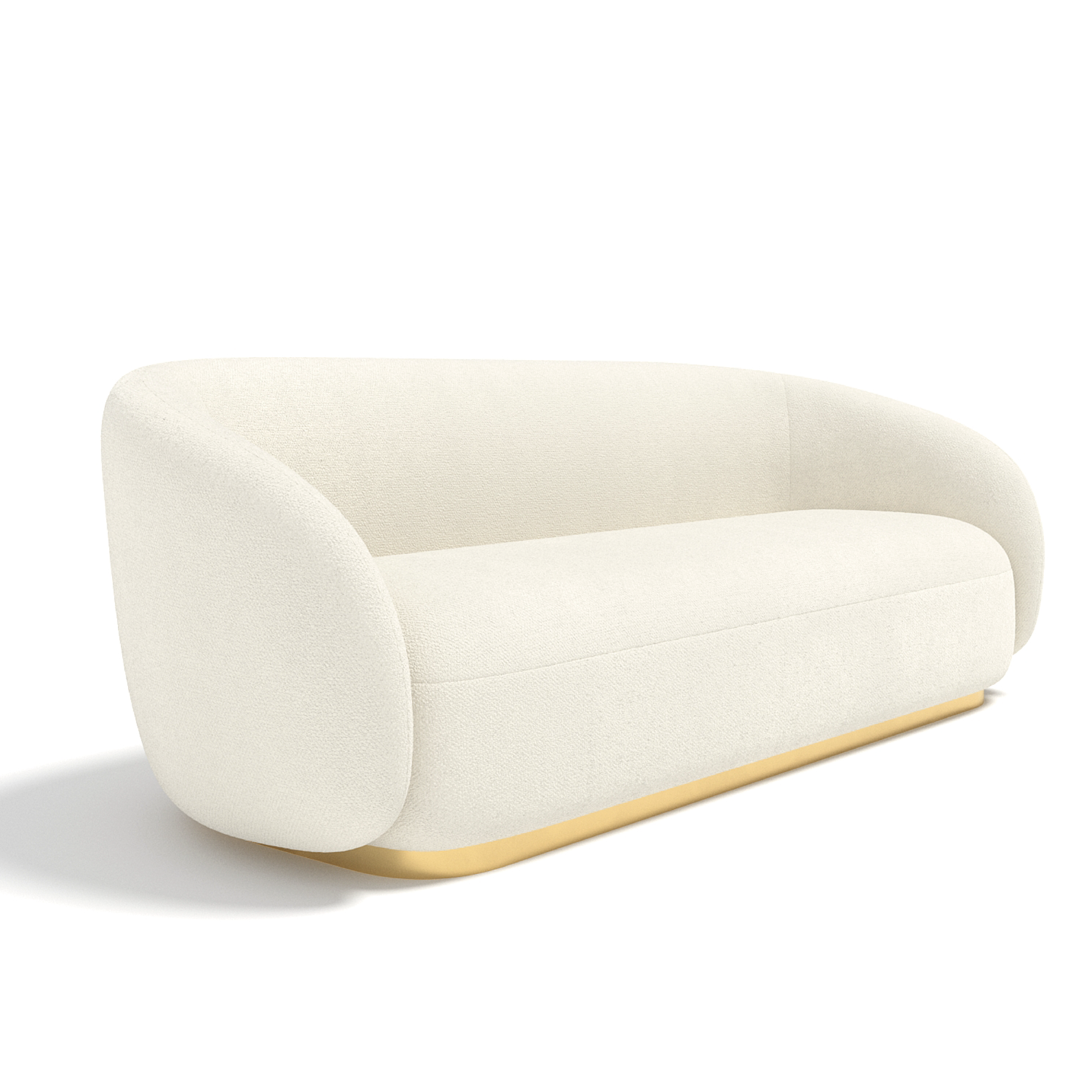 Идеальное решение для бутик-отелей и концептуальных ресторанов. Мягкие округлые формы создают ощущение воздушности, а латунная лента на цоколе добавляет стильный акцент. Минималистичный дизайн делает этот диван универсальным для современных интерьеров.