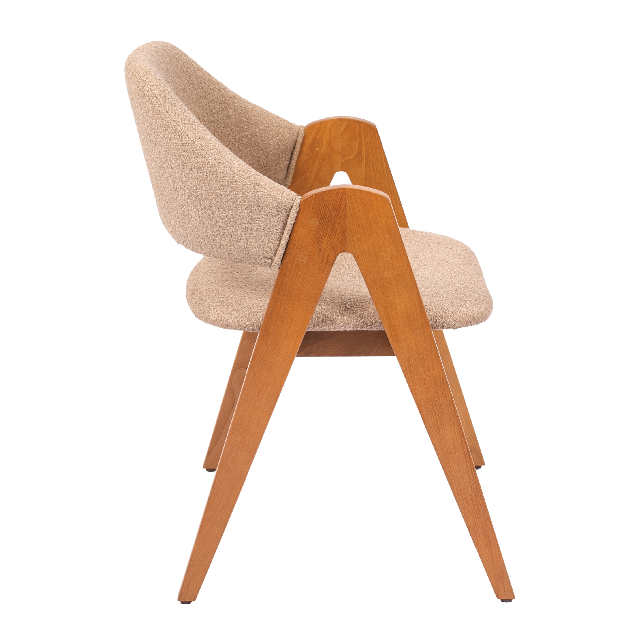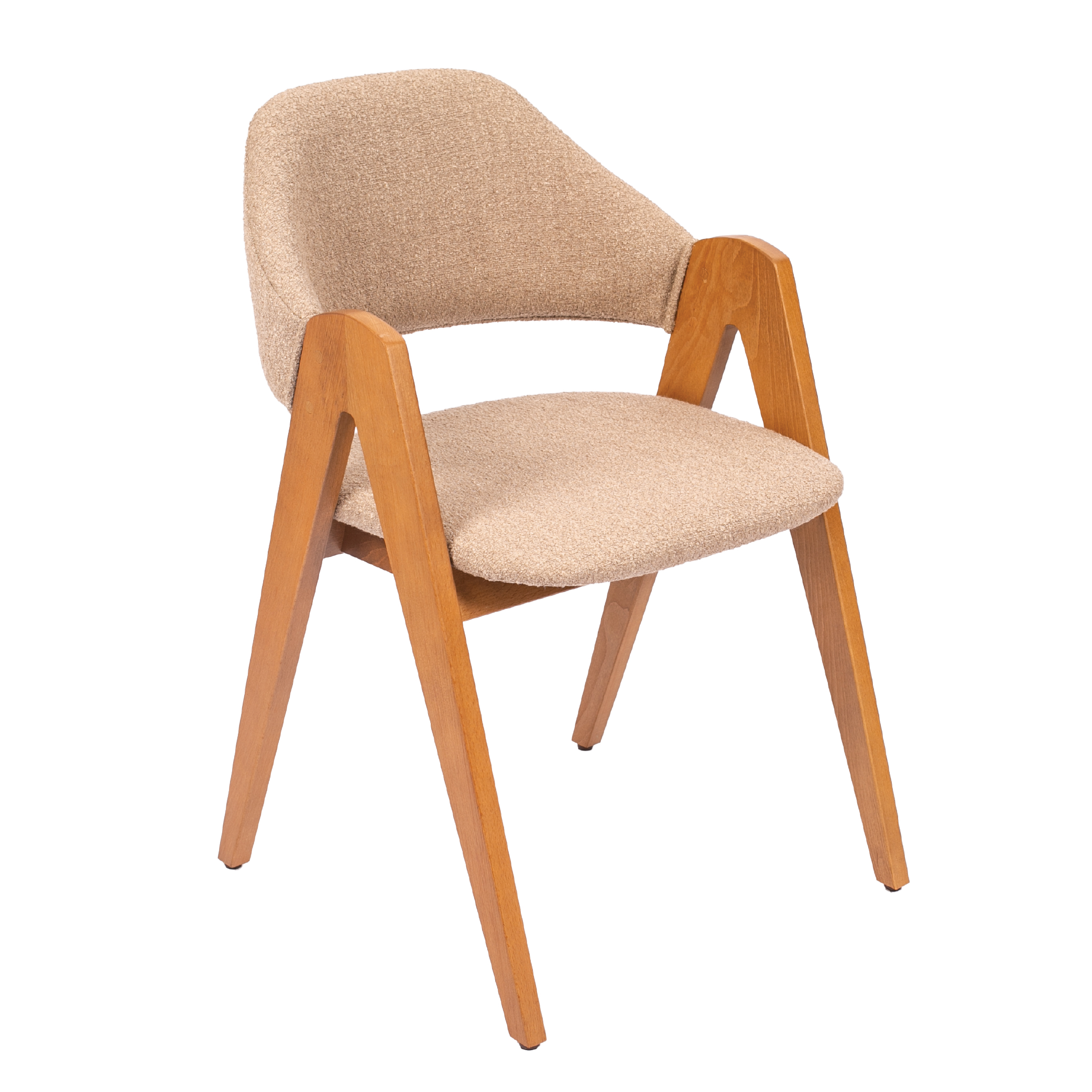 Идеальный выбор для ресторанов и отелей премиум-класса. Изогнутая эргономичная спинка обеспечивает правильную поддержку спины, а удобные подлокотники добавляют комфорт. Прочная деревянная конструкция гарантирует долговечность, а оригинальный дизайн делает этот стул стильным акцентом интерьера.
